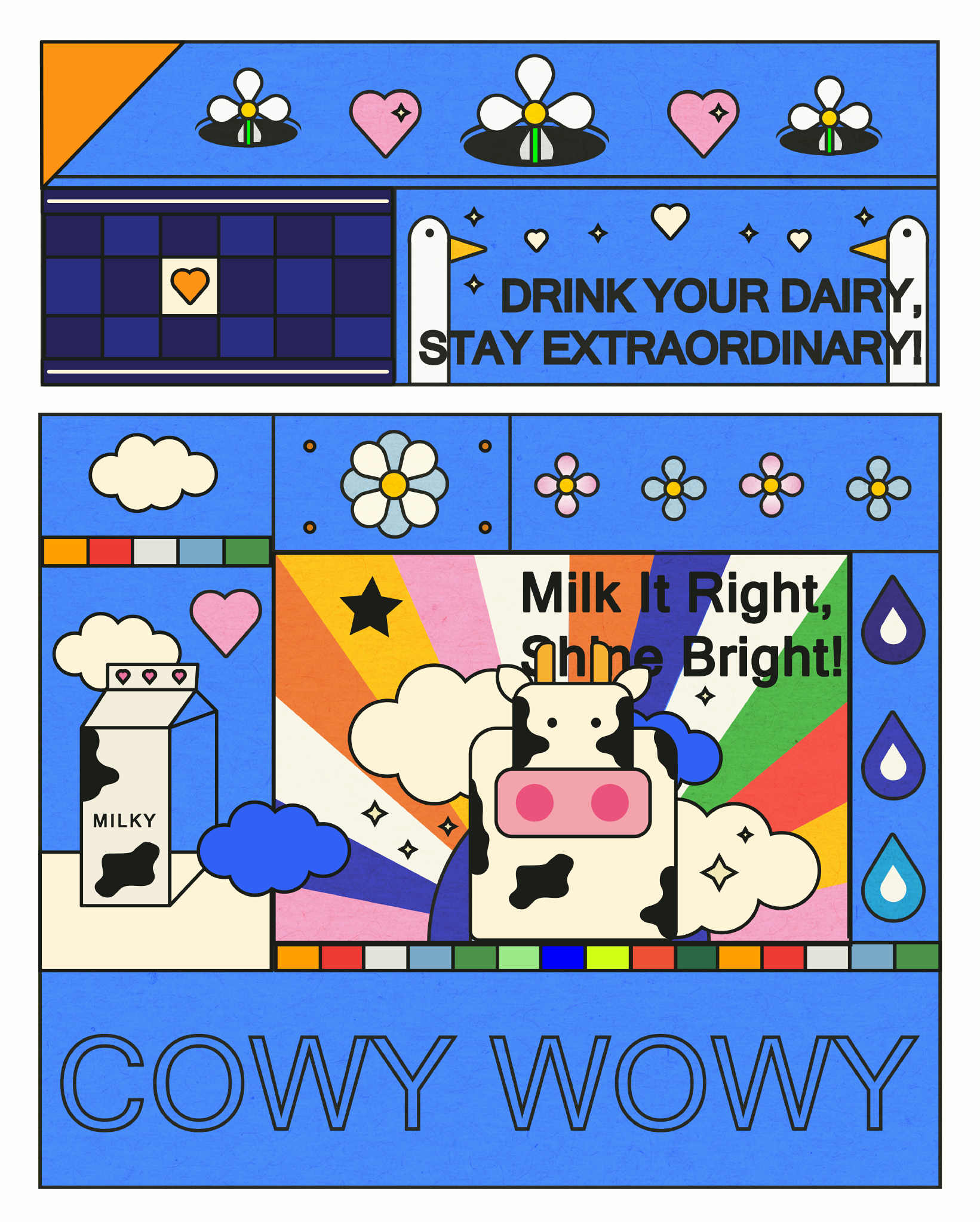 Zestaw projektów pokazujących różnorodność mojej pracy – branding, rebranding, social media, merch i ilustracje